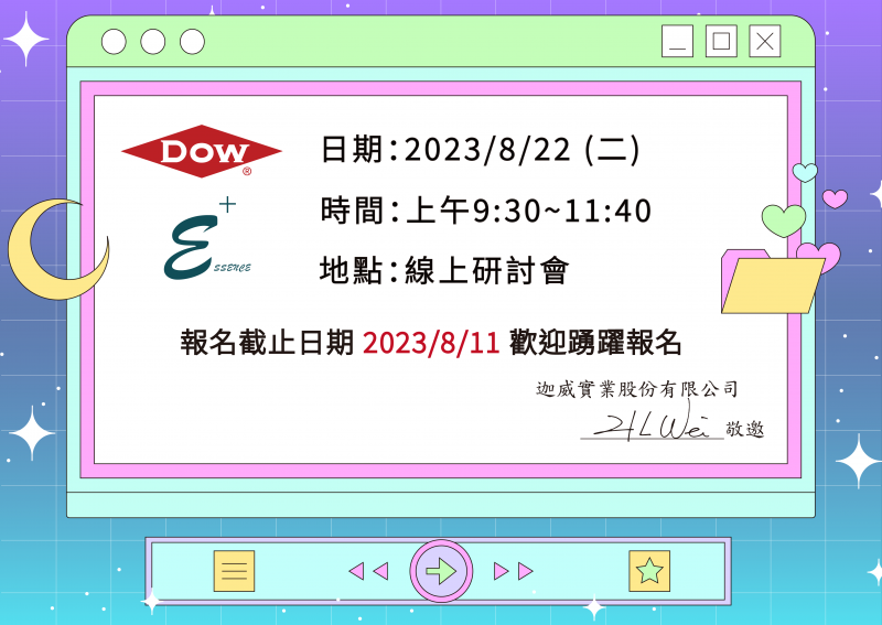 迦威誠摯地邀請您參加我們與陶氏即將舉辦的線上新品發表會。
